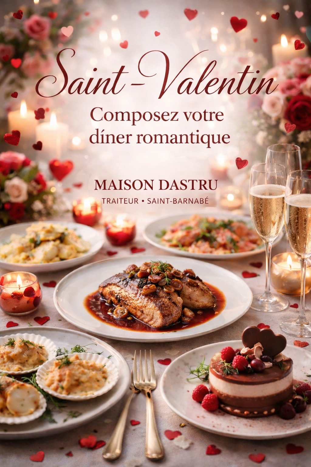 Émerveillez vos invités avec un menu festif signé Traiteur Maison Dasru. Foie gras maison, chapon farci, bûches pâtissières et amuse-bouches de Noël s’invitent à votre table pour une fin d’année magique. Livraison possible à domicile ou en entreprise.
